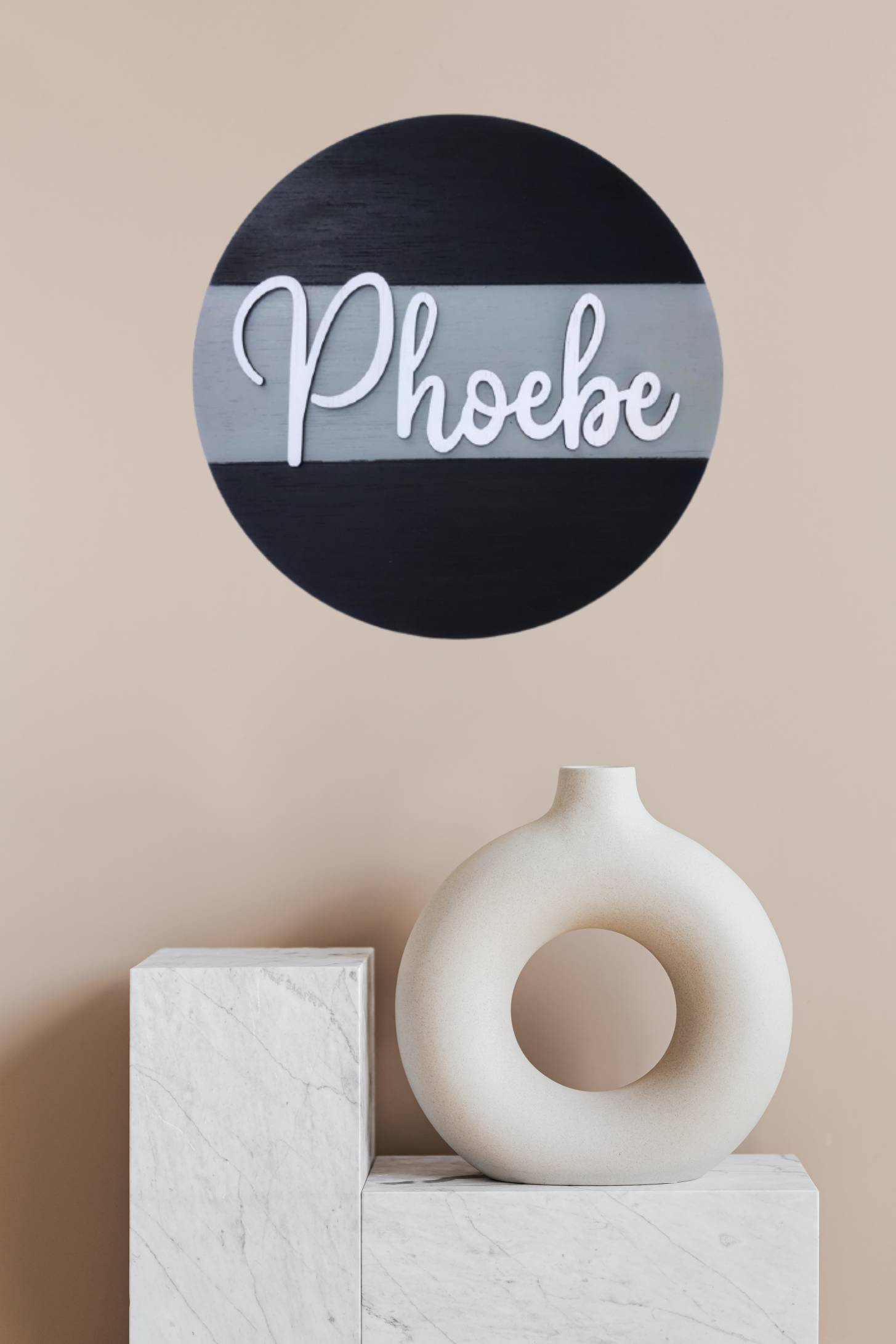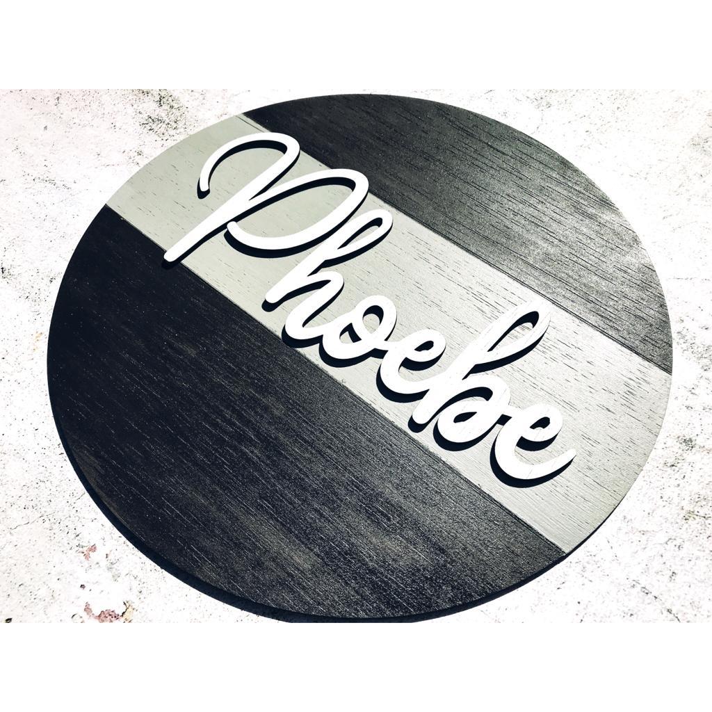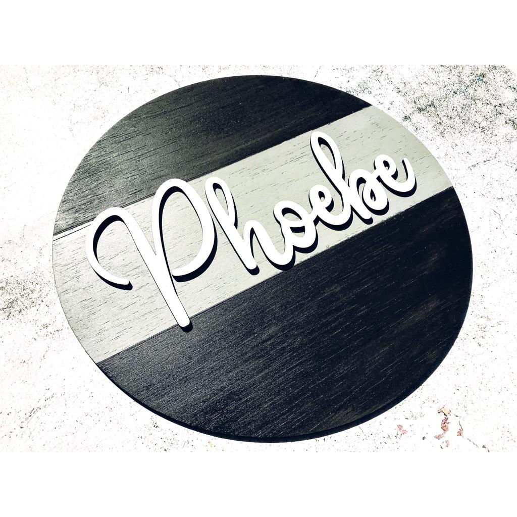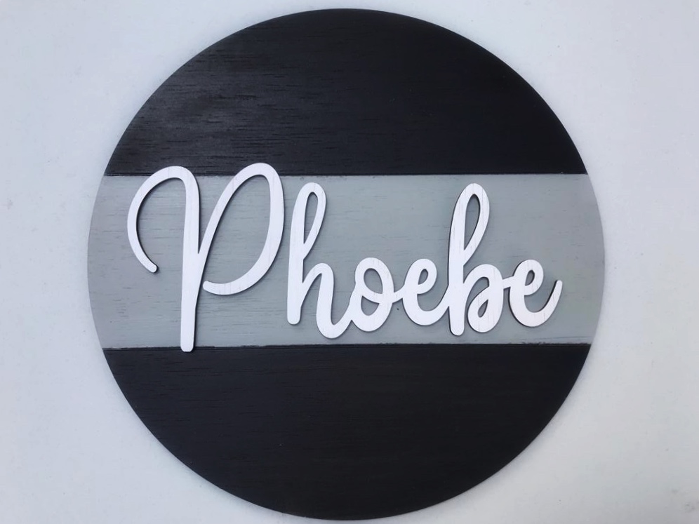 One side of the wall decor or sign would have design and name, while the other side would be left blank.